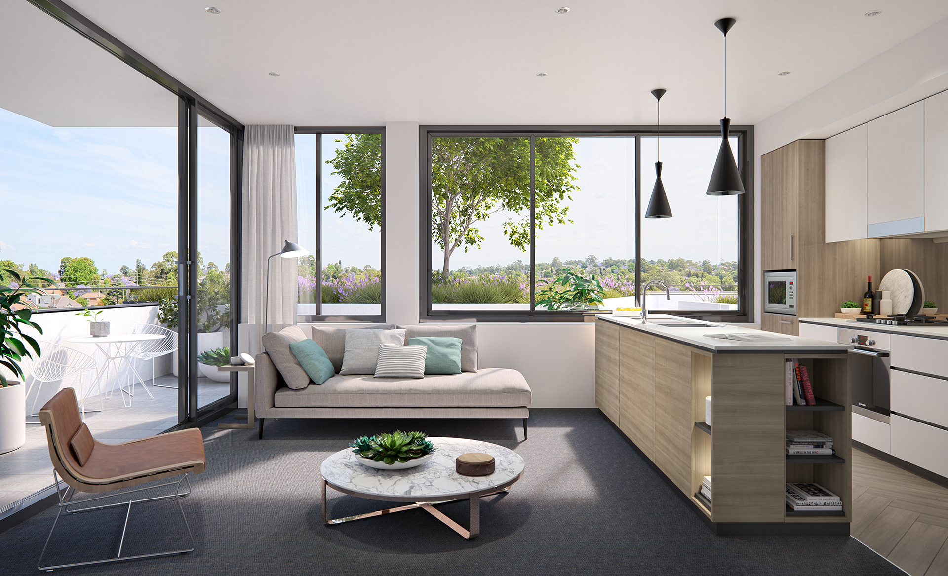 Your choice of brand new architecturally crafted 2 bedroom apartments, all functional and generous open-plan living spaces seamlessly connected through floor-to-ceiling windows to the world beyond.